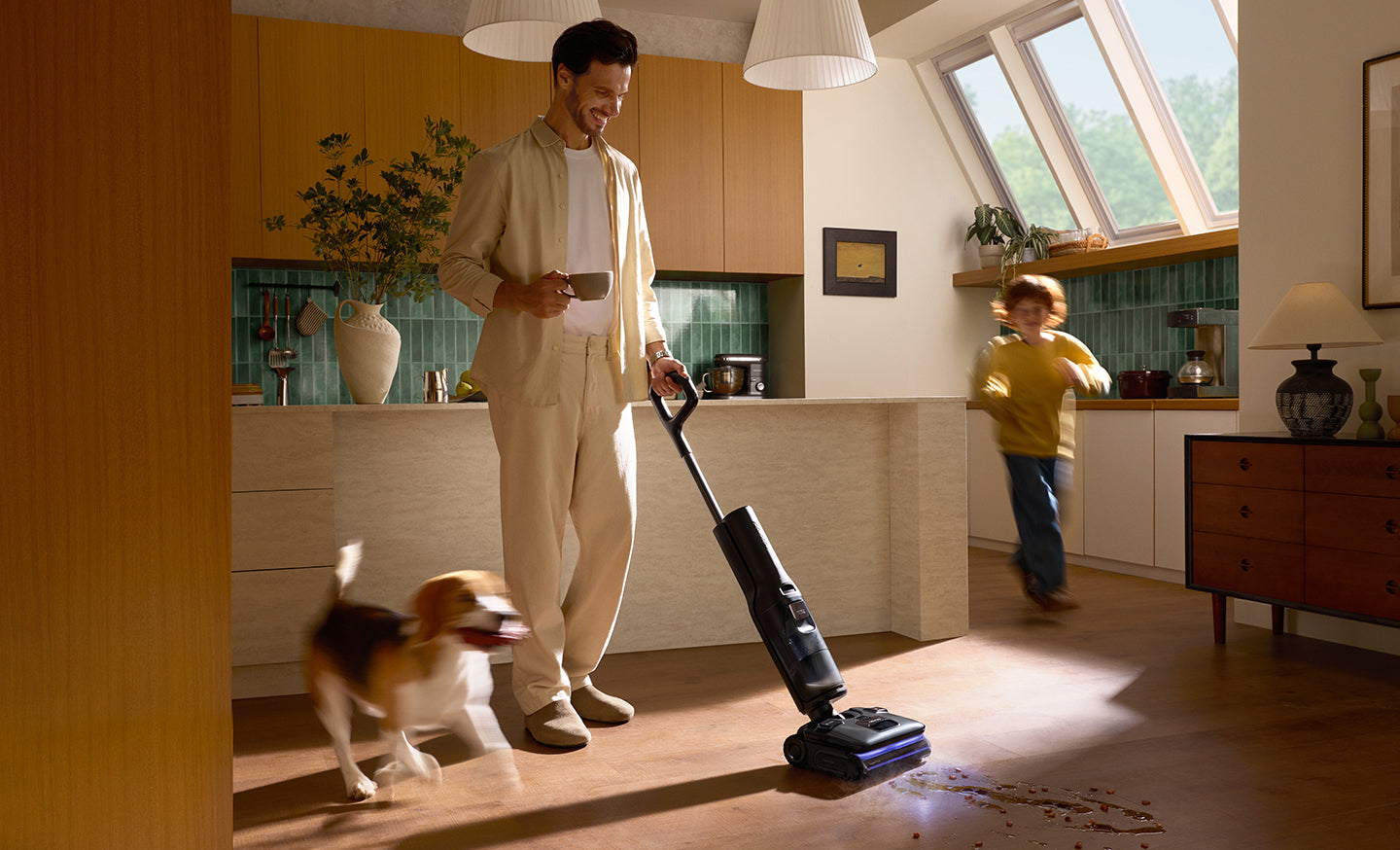 Ar uzlaboto sūkšanas jaudu vienā kustībā likvidē ikdienas mitros un sausos netīrumus.