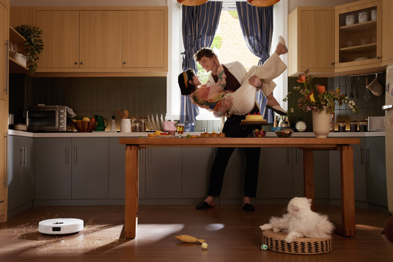 Robots ir aprīkots ar divām paceļamām un rotējošām mitrās uzkopšanas drānām, kas ļauj tikt galā ar noturīgiem traipiem uz grīdām ar cietu grīdas segumu. Papildus tam, ja viedais robots konstatē tuvumā paklāju, mitrās uzkopšanas drāna tiek automātiski pacelta, lai tas paliktu sauss, nodrošinot vienmērīgu tīrīšanu.